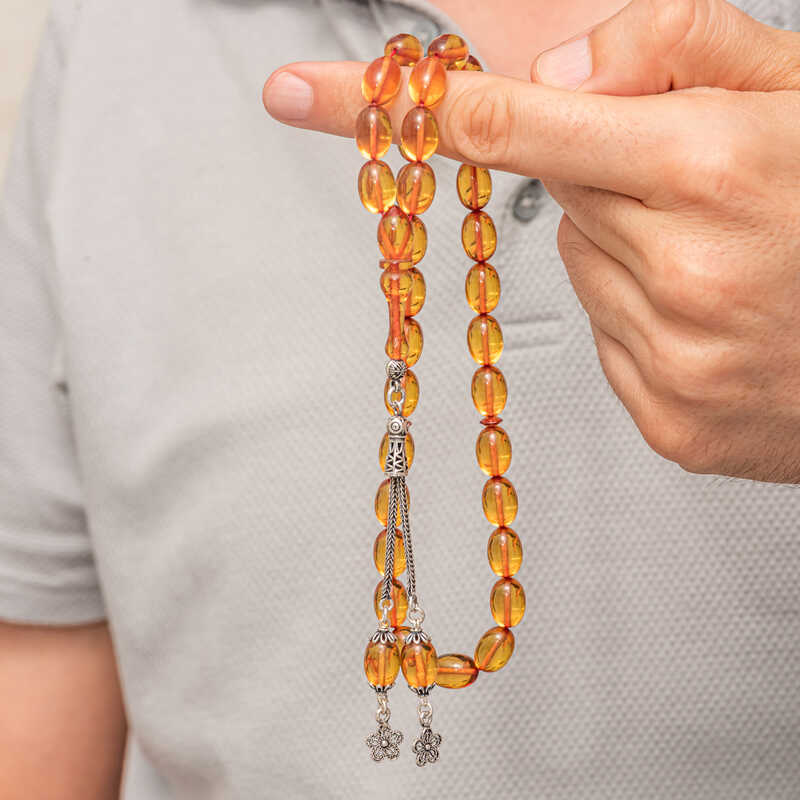 Gümüş Püsküllü Ateş Kehribar Tesbih