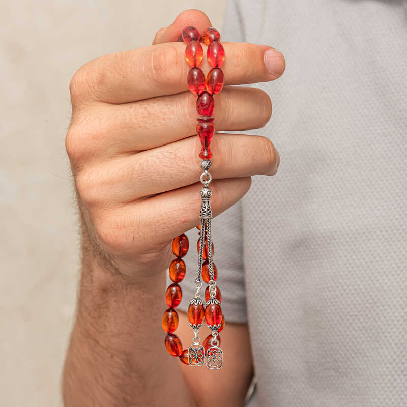 Gümüş Püsküllü Ateş Kehribar Tesbih