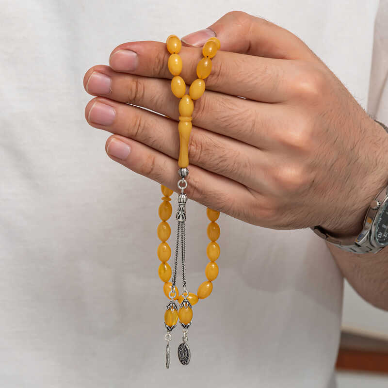 Gümüş Püskül Sıkma Kehribar Tesbih