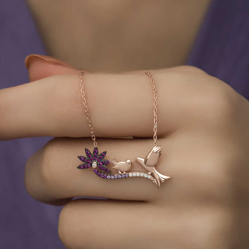 ​Gümüş Rose Anne Ve Yavru Kuş Bayan Kolye