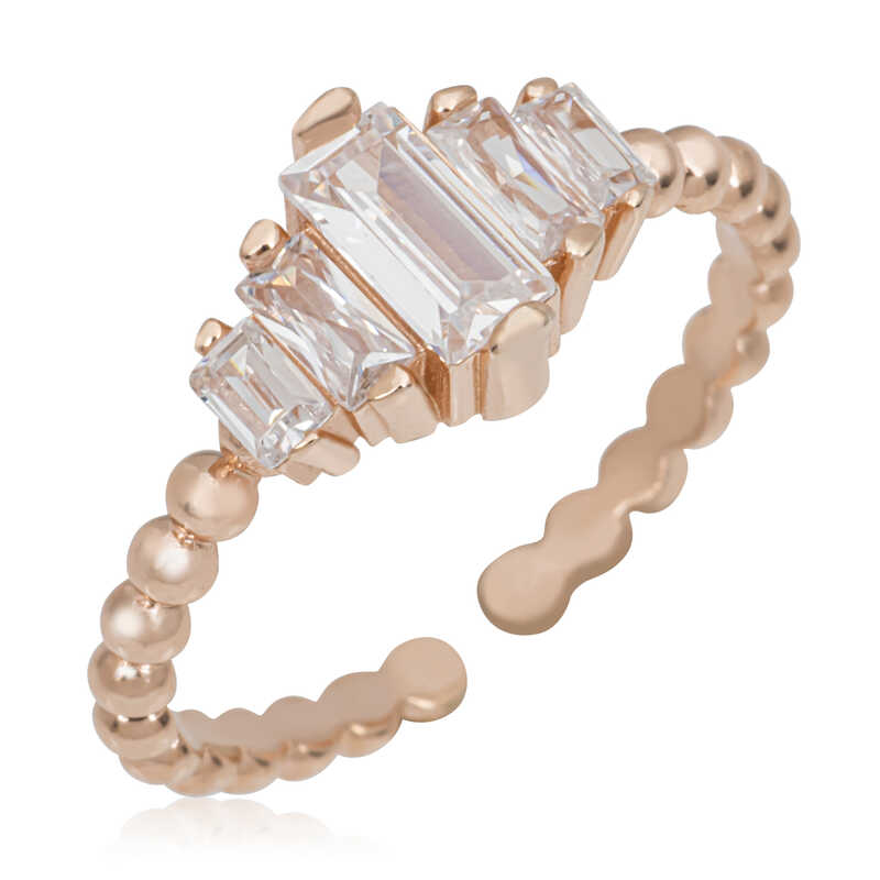Gümüş Rose Ayarlanabilir Baget Kare Kadın Yüzük