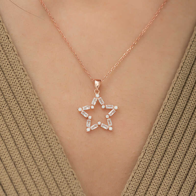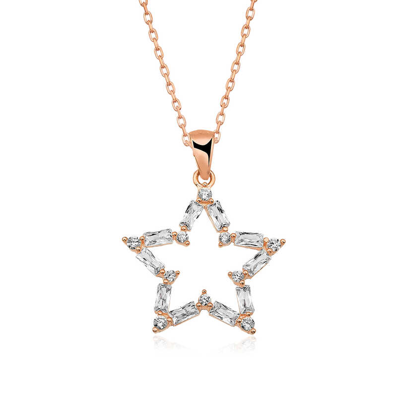 Gümüş Rose Baget Taşlı Yıldız Kolye