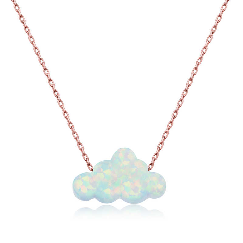 Gümüş Rose Beyaz Opal Taş Bulut Bayan Kolye