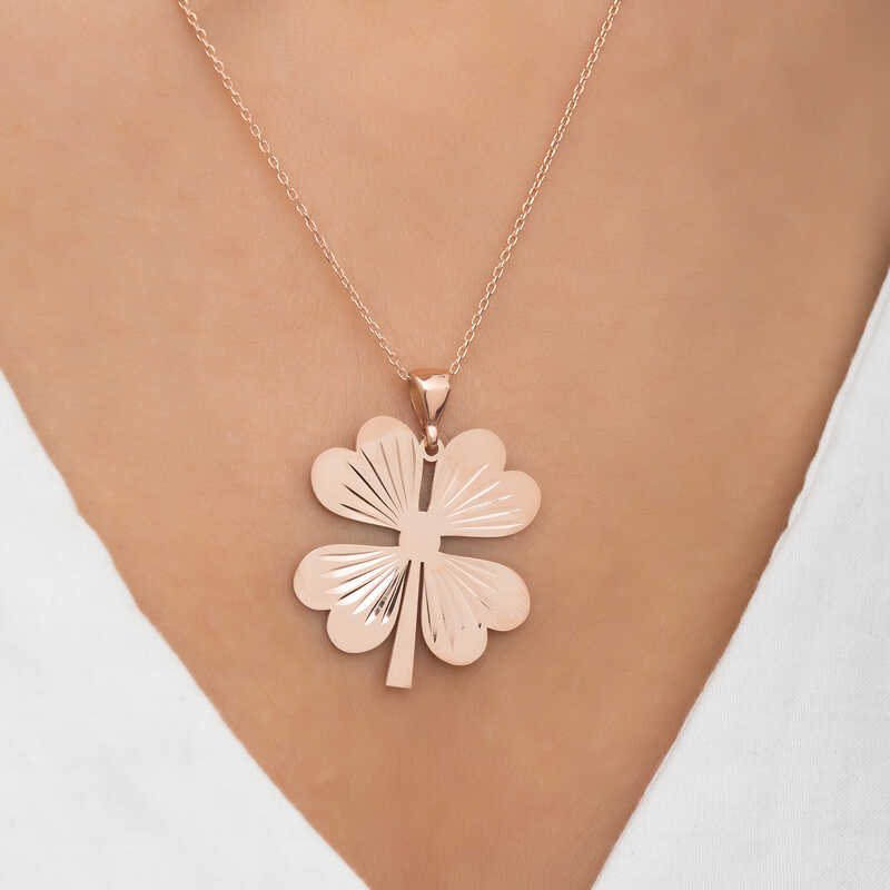 Gümüş Rose Dört Yaprak Rose Yonca Bayan Kolye