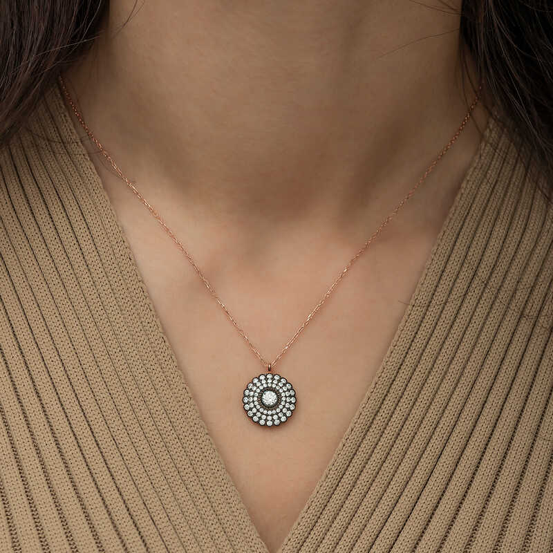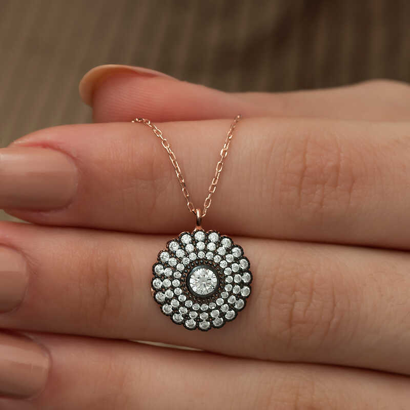 Gümüş Rose Elmas Montür Çiçek Bayan Kolye