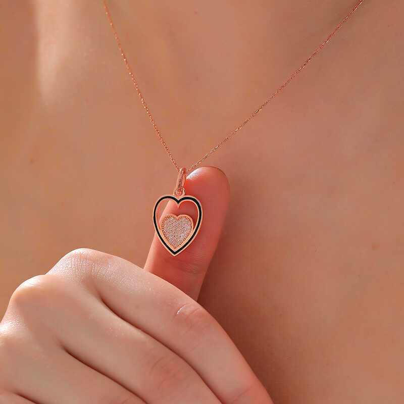 Kalp simgesi daima koşulsuz sevginin ve aşkın sembolü olmuştur. Dini öğretilerde ise kalbin gücü sınırsızdır. Çünkü kalp Yaradanın evi, bizim ise evrene açılan gerçeklik kapımızdır. Bu şık gümüş kalp kolye; doğum günü hediyesi, sevgililer günü hediyesi veya annelere hediye olarak özel günlerde tercih edilebilecek mükemmel bir seçenektir. Gümüş kalp kadın kolye 925 ayar gümüşten imal edilmiştir. Bu kolye üzerinde rose kaplama yapılmıştır. Rose kaplama yapılan gümüş kadın kolye modelleri parlaklığını uzun süre muhafaza eder. Üzerinde bulunan taşlar zirkondur. Tüm gümüş kadın kolye modellerimizde olduğu gibi gümüş kalp kadın kolye modeli de el emeği ile üretilmiştir. Gümüş ve değerli taşlar nedeniyle belirtilen ortalama ürün ağırlığında ± %10 sapma olabilmektedir.