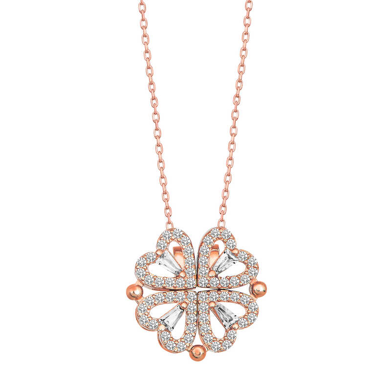 Gümüş Rose Kalpli Açılabilen Yonca Kadın Kolye