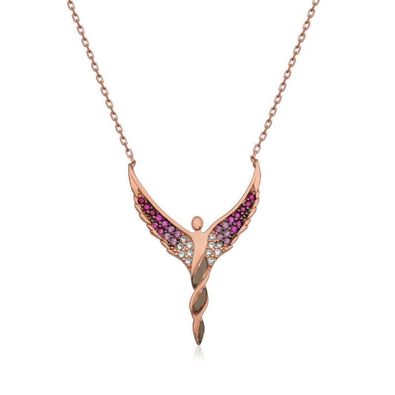Gümüş Rose Kanatlı Melek Bayan Kolye