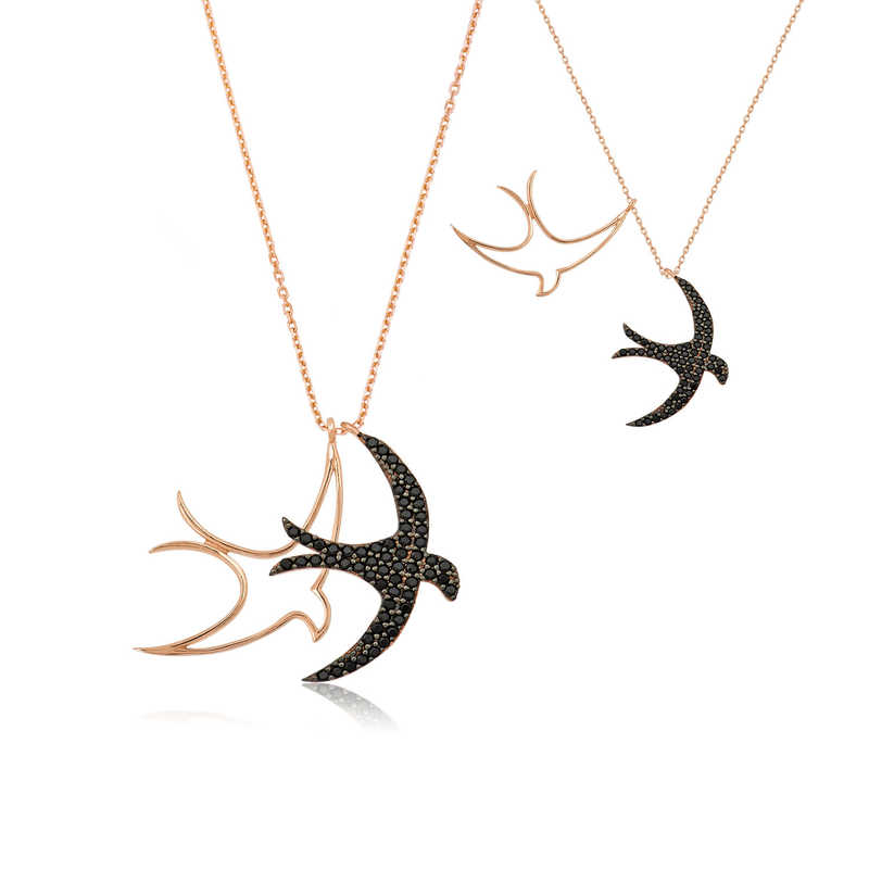 Gümüş Rose Kırlangıç Çifti Bayan Kolye