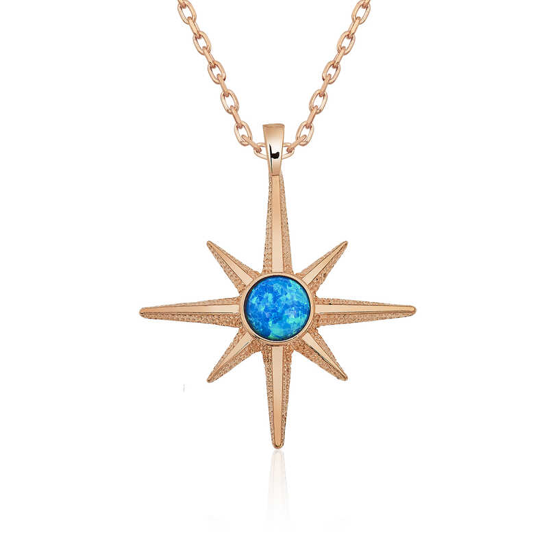 Gümüş Rose Mavi Opal Taşlı Kutup Yıldızı Kolye