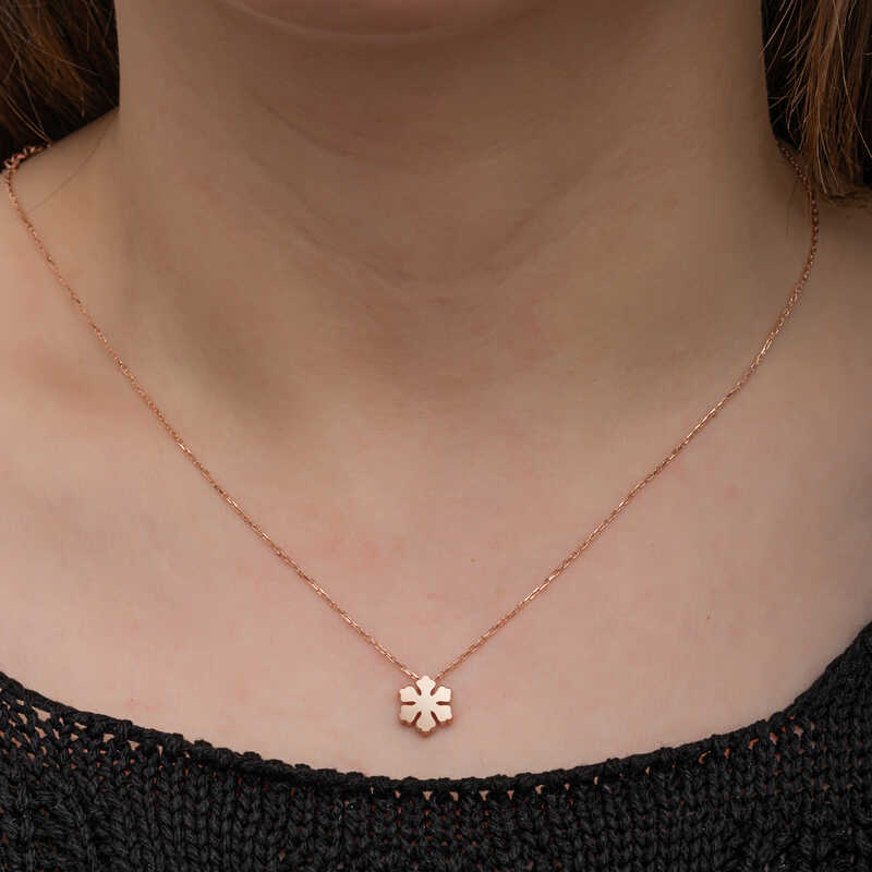 Kadınların ışıltısı, berraklığı kar tanesine benzetilip özel olarak tasarlanmıştır. Kar tanelerinin her birinin kadınlar gibi eşsiz ve ayrı kıymette olması onları özel kılan bir diğer özelliktir. Asilliği her dönemde dikkat çekmeyi başarmıştır. Bunun yanında insanların tıpkı kar taneleri gibi birbirlerine zarar vermeden de mutlu bir şekilde yaşayabileceklerini sembolize etmektedir. Bu şık kolye; doğum günü hediyesi, sevgililer günü hediyesi veya annelere hediye olarak özel günlerde tercih edilebilecek mükemmel bir seçenektir. Kolye, 925 ayar gümüşten imal edilmiştir. Gümüş üzerine rose kaplama yapılmıştır. Rose kaplama yapılan gümüş kadın kolye modelleri parlaklığını uzun süre muhafaza eder, oksitlenmesi gecikir. Zincir boyu ortalama 45 cm"dir. Tüm gümüş kadın kolye modellerinde olduğu gibi bu gümüş minimal kar tanesi kadın kolye de tamamı el emeği ile üretilmiştir. Gümüş ve değerli taşlar nedeniyle belirtilen ortalama ürün ağırlığında ± %10 sapma olabilmektedir.