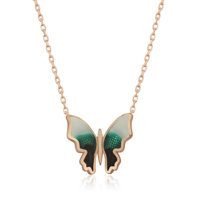 Gümüş Rose Minimal Kelebek Bayan Kolye