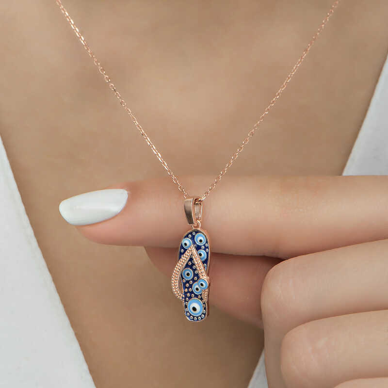 Gümüş Rose Nazar Parmak Arası Terlik Kadın Kolye