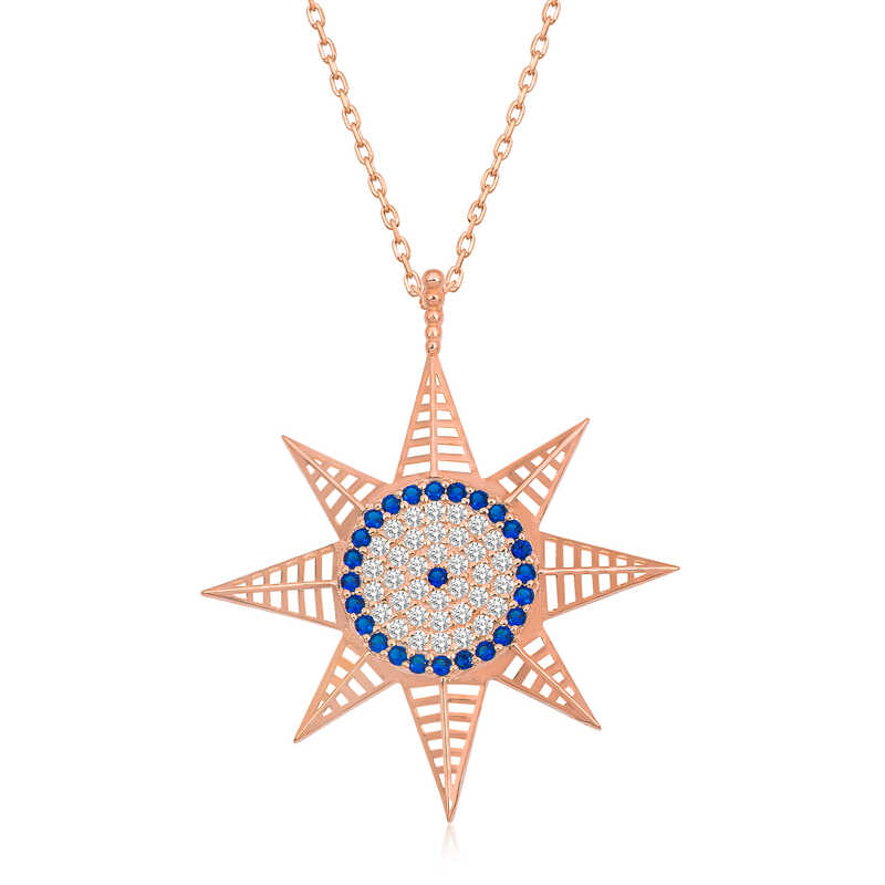 Gümüş Rose Nazarlı Kutup Yıldızı Kadın Kolye