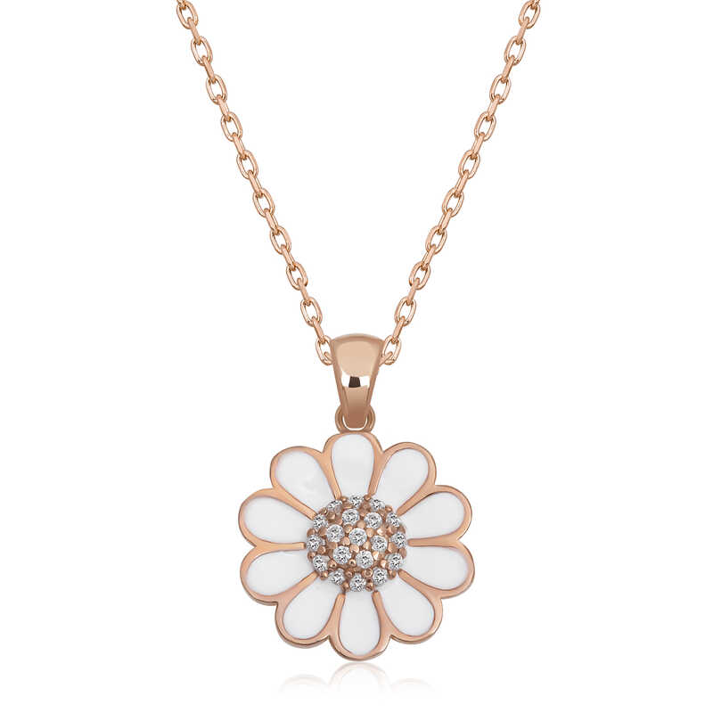 Papatya çiçeği temiz sevgi anlamını ifade eder. En büyük özelliklerinden biri her sapında bir tane olmasıdır. Bu güzellik tasarlanarak ortaya çıkan bu ışıl ışıl kolye zirkon taşlarla süslendi… Bu şık kolye; doğum günü hediyesi, sevgililer günü hediyesi veya annelere hediye olarak özel günlerde tercih edilebilecek mükemmel bir seçenektir. Gümüş papatya kadın kolye 925 ayar gümüşten imal edilmiştir. Bu kolye üzerinde rose kaplama vardır. Rose kaplama yapılan ürünler parlaklığını uzun süre muhafaza eder, gümüş rengini pembe renge çevirir. Üzerinde bulunan ışıl ışıl taşlar zirkondur. Tüm gümüş kadın kolye modellerinde olduğu gibi gümüş papatya kadın kolye modeli de el emeği ile üretilmiştir. Gümüş ve değerli taşlar nedeniyle belirtilen ortalama ürün ağırlığında ± %10 sapma olabilmektedir.