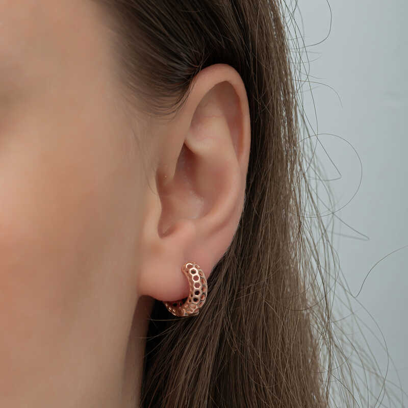 Gümüş Rose Petek Desenli Halka Kadın Küpe