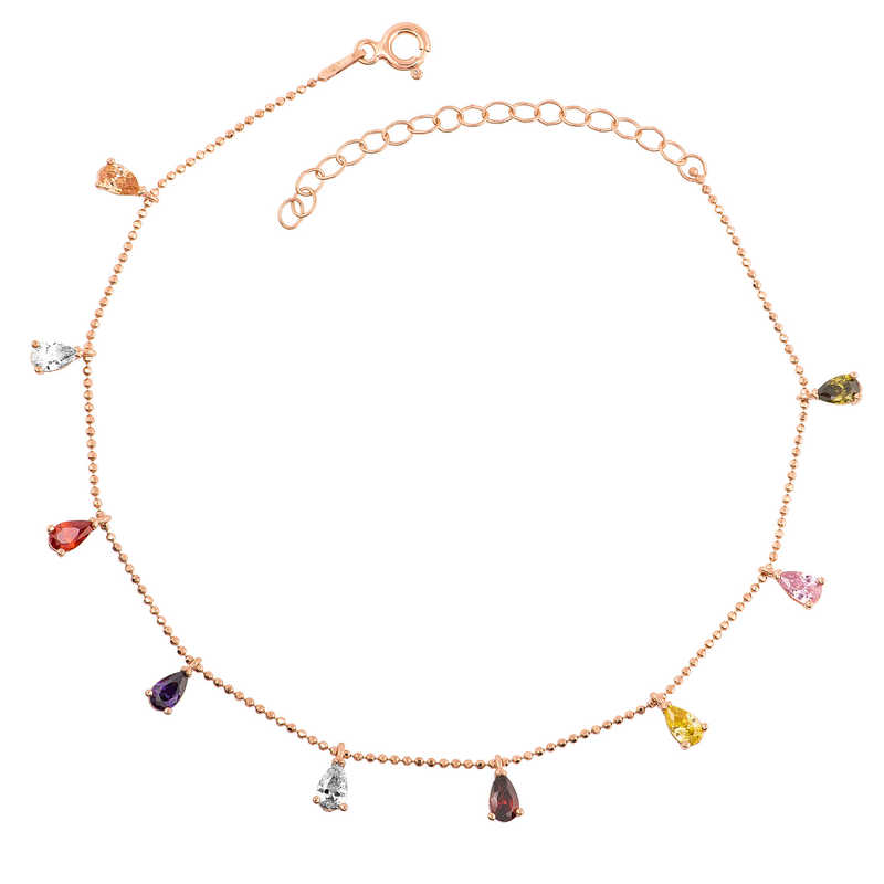 Kalbimizin ve ruhumuzun en eğlenceli tarafı olan rengarenk hayal dünyamızın yansıması özel tasarım renkli halhallar… Bu şık halhalı doğum günü hediyesi, sevgililer günü hediyesi veya annelere hediye olarak özel günlerde tercih edilebilecek mükemmel bir seçenektir. Renkli damla halhal modeli 925 ayar gümüşten üretilmiştir. Gümüş üzerine rose altın kaplama yapılmıştır. Rose altın kaplama yapılan damla halhal modelleri parlaklığını uzun süre muhafaza eder, gümüş rengini pembe renge dönüştürür ve oksitlenmeyi geciktirir. Halhal üzer,indeki taşlar farklı renklerde olabilmektedir. Tüm gümüş halhal modellerinde olduğu gibi gümüş renkli damla halhal modeli de el emeği ile üretilmiştir. Gümüş ve değerli taşlar nedeniyle belirtilen ortalama ürün ağırlığında ± %10 sapma olabilmektedir.