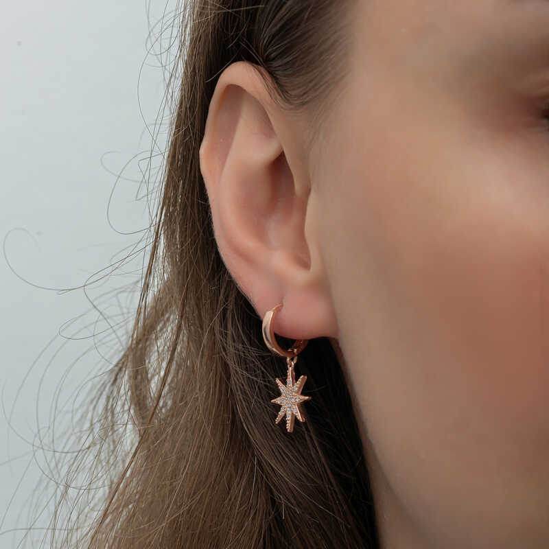 Gümüş Rose Sallantılı Kutup Yıldızı Kadın Küpe