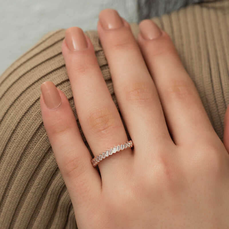 Gümüş Rose Sıralı Baget Taşlı Bayan Yüzük