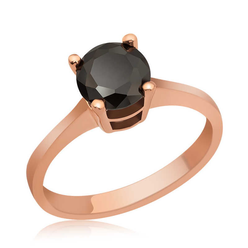 Gümüş Rose Siyah Tek Taş Bayan Yüzük