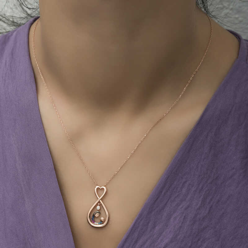 Gümüş Rose Sonsuz Kalpli Anne Çocuk Kolyesi