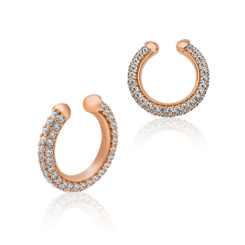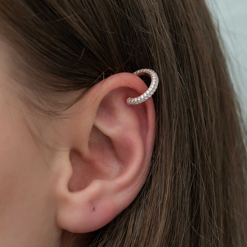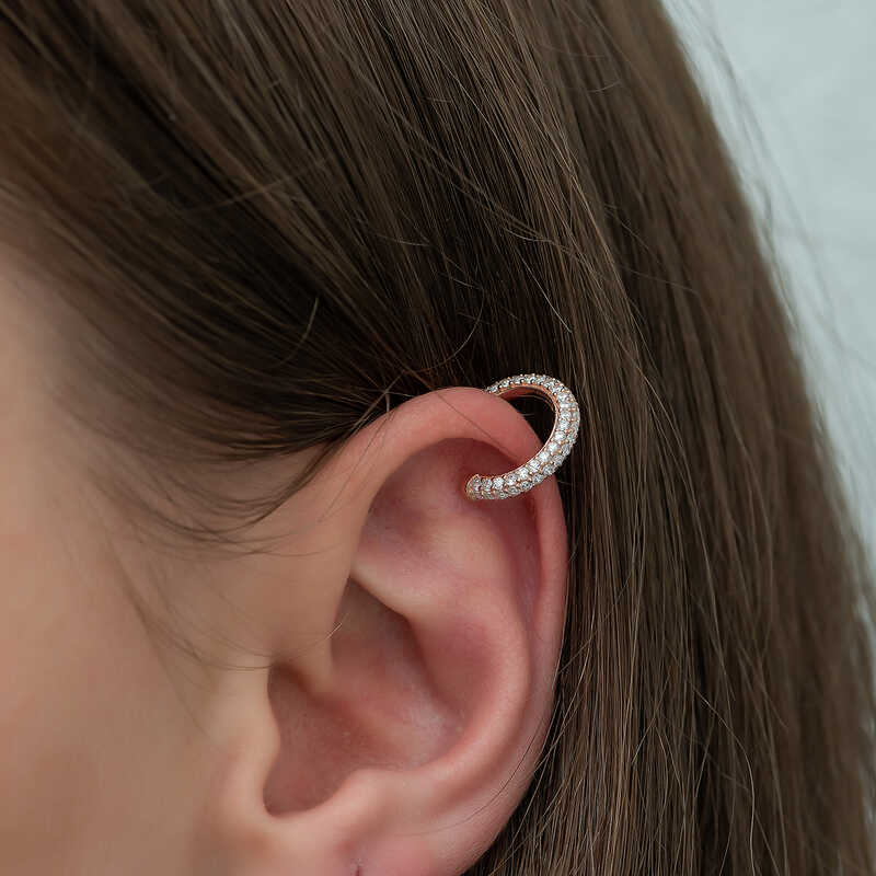 ​Gümüş Rose Taşlı Halka Kıkırdak Küpe