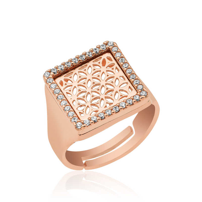 Evrenin ve yaşamın sırlarını barındıran yaşam çiçeği motifli tasarımlar en ince işçiliği ile hayat bulan tasarımlardır. Her bir çemberin merkezi ve çevresindeki altı çemberin kesiştiği yerlerden oluşan yaşam çiçeği, mucizenin ve ilhamın kendiniz olduğunu hissettirebilecek en özel ve en anlamlı tasarımlar arasındadır. Sevdiklerinize hediye olarak da tercih edebileceğiniz yaşam çiçeği motifli tasarımlar sayesinde hayatınızdaki kişinin sizin için ne kadar özel ve değerli olduğunu ona hissettirebilirsiniz. Sevdiğiniz kişinin kullanırken hep sizi hatırlayacağı ve duygularınızı en iyi şekilde ifade edebileceğiniz “Yaşam Çiçeği” koleksiyonu tasarımları her yaştan kadına armağan edebilirsiniz. Gümüş ayarlanabilir rose yaşam çiçeği yüzük de bu seçenekler arasında yer almaktadır. Yüzük; 925 ayar gümüşten imal edilmiştir. Gümüş üzerine rose kaplama yapılmıştır. Diğer yüzüklerde olduğu gibi gümüş ayarlanabilir rose kaplama yaşam çiçeği yüzük de el emeği ile üretilmiştir. Gümüş ve değerli taşlar nedeniyle belirtilen ortalama ürün ağırlığında ± %10 sapma olabilmektedir.