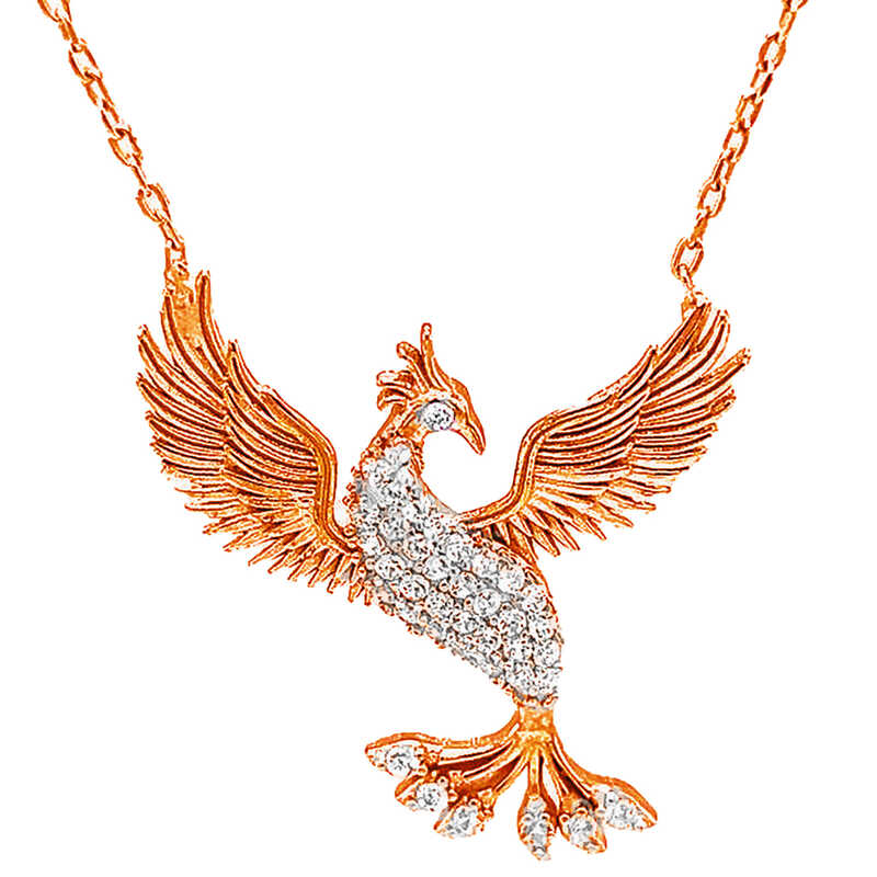 Gümüş Rose Zümrüdü Anka Kuşu Kadın Kolye