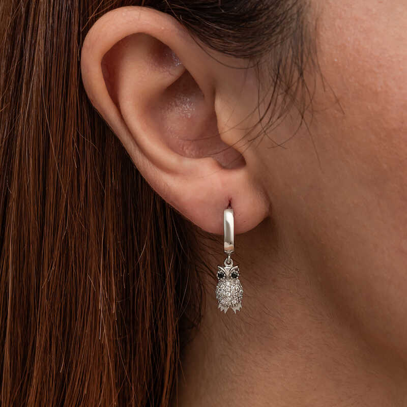Gümüş Sallantılı Baykuş Kadın Küpe