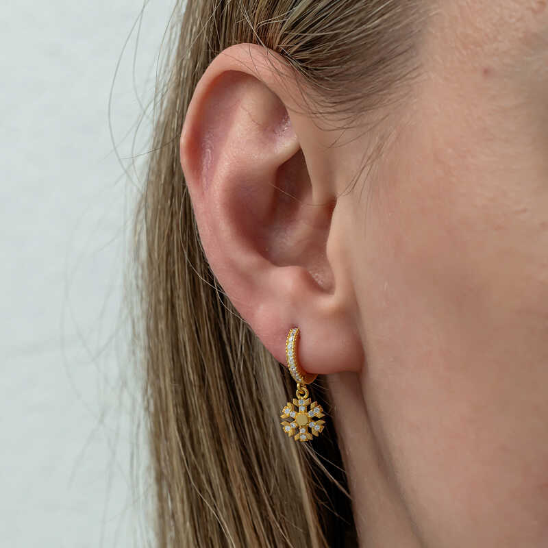 Gümüş Sallantılı Gold Kar Tanesi Kadın Küpe