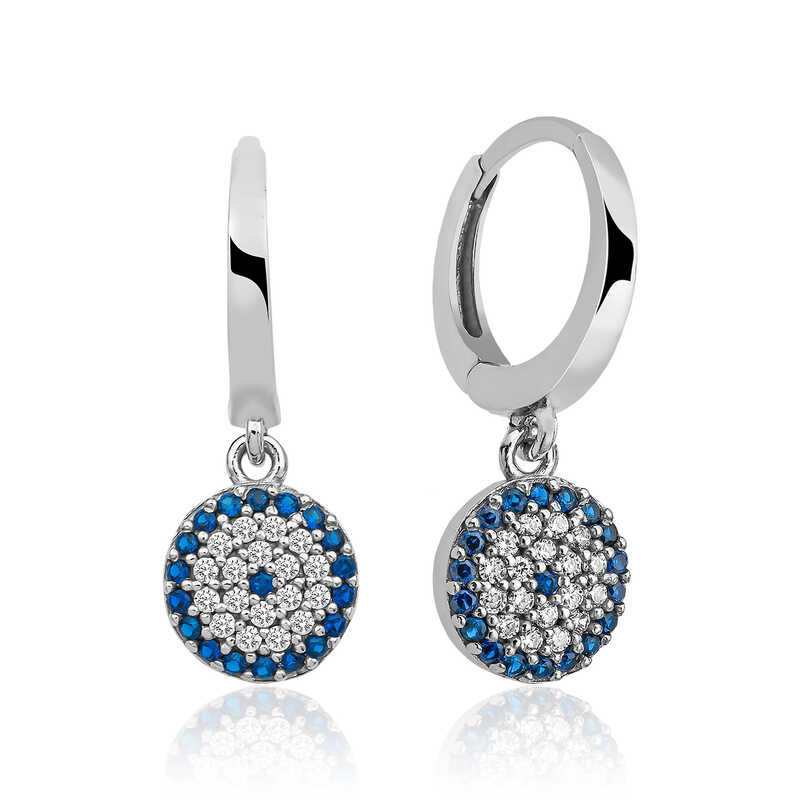 Nazar boncuğunu insanlar uzun yıllardan beri kötü bakıştan korunmak için kullanmışlardır. Kötü bakışların insanlar üzerinde olumsuz etki oluşturmasına karşı bir önlemdir nazar boncuğu… Bu sebeptendir ki insanlar sevdiklerini korumak için nazar boncuğu takmaktadır. Bu nazar küpe de şıklığı ve zarafeti yansıtıyor. Her dönem sevilen ve şıklığından ödün vermeyen bu modeli; doğum günü hediyesi, sevgililer günü hediyesi veya annelere hediye olarak özel günlerde tercih edebilirsiniz. Sallantılı nazar küpe modeli 925 ayar gümüşten imal edilmiştir. Gümüş üzerine rodyum kaplama yapılmıştır. Rodyum kaplama yapılan gümüş kadın küpeler parlaklığını uzun süre muhafaza eder, oksitlenmesi gecikir. Üzerinde bulunan taşlar zirkondur. Tüm gümüş kadın küpelerde olduğu gibi bu gümüş sallantılı nazar kadın küpe de tamamı el emeği ile üretilmiştir. Gümüş ve değerli taşlar nedeniyle belirtilen ortalama ürün ağırlığında ± %10 sapma olabilmektedir.