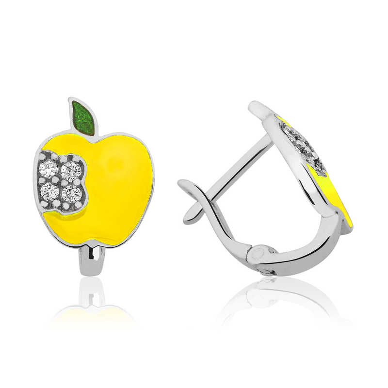 En kıymetlileriniz, bebekleriniz, çocuklarınız için hazırlanan, sevimli figürlerle tasarlanan birbirinden zarif ve renkli bebek ve çocuk küpeleri ile ömür boyu saklanabilecek, anlamlı bir hediye seçebilirsiniz. Sarı elma figürlü çocuk küpesi 925 ayar gümüşten imal edilmiştir. Gümüş üzerine rodyum kaplama yapılmıştır. Rodyum kaplama yapılan gümüş çocuk küpeleri parlaklığını uzun süre muhafaza eder ve oksitlenmesi gecikir. Küpe üzerinde bulunan taşlar zirkon"dur. Tüm çocuk küpe modelleri el emeği ile üretilmiştir. Gümüş ve değerli taşlar nedeniyle belirtilen ortalama ürün ağırlığında ± %10 sapma olabilmektedir.