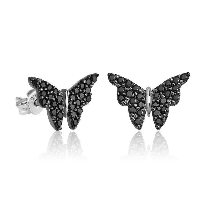 Her yaştan kadının stiline uyum sağlayabilecek farklı küpe modellerinin yer aldığı koleksiyonumuzda birbirinden özgün tasarımlı küpe modelleri sizleri bekliyor. Kelebek figürü kullanılarak hazırlanan küpe aklınızı başınızdan alacak. Günlük kullanıma uygun bir model olan küpe her an sizlerle birlikte. Göz kamaştıran yapısıyla tasarlanmış gümüş kelebek küpeyi severek kullanacaksınız. Bu koleksiyonda hem kendiniz, hem de sevdikleriniz için mutlaka uygun bir küpe bulacaksınız. Gümüş siyah kelebek küpe, 925 ayar gümüşten imal edilmiştir. Gümüş üzerine rodyum kaplama yapılmıştır. Rodyum kaplama yapılan gümüş bayan küpeler parlaklığını uzun süre muhafaza eder, oksitlenmesi gecikir. Üzerinde bulunan taşlar zirkondur. Tüm gümüş bayan küpelerde olduğu gibi bu gümüş siyah kelebek küpe modeli de el emeği ile üretilmiştir. Gümüş ve değerli taşlar nedeniyle belirtilen ortalama ürün ağırlığında ± %10 sapma olabilmektedir.