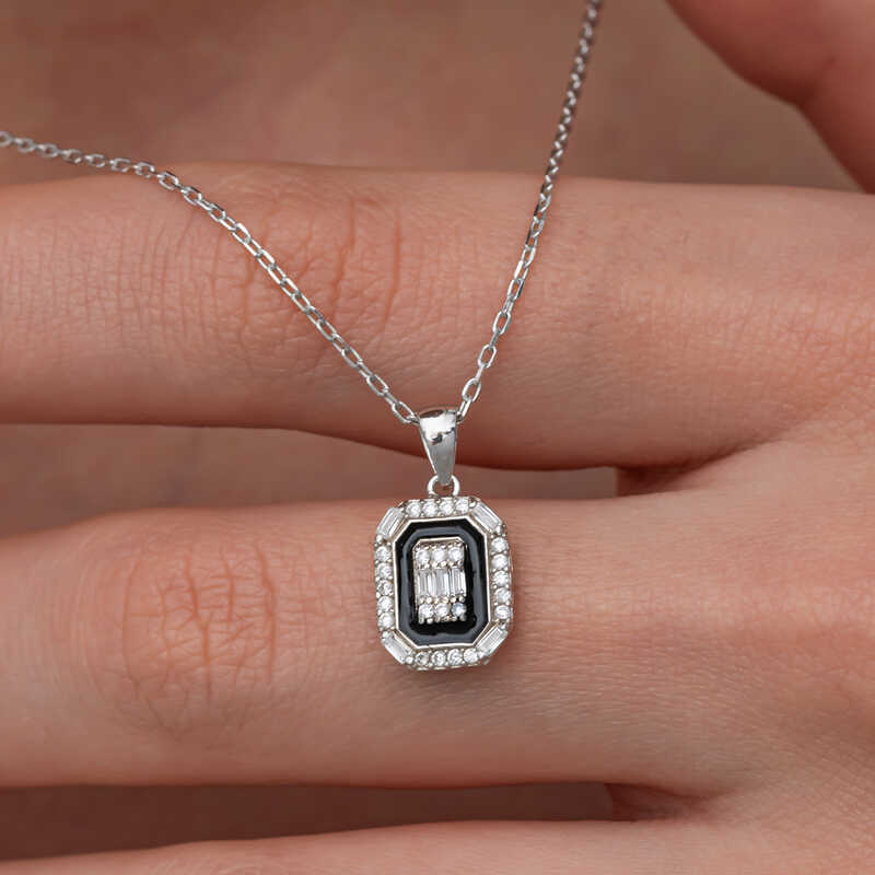 Gümüş Siyah Mineli Baget Kadın Kolye