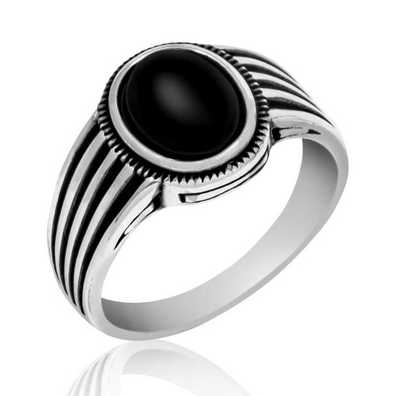 Gümüş Siyah Taşlı Çizgili Erkek Yüzük