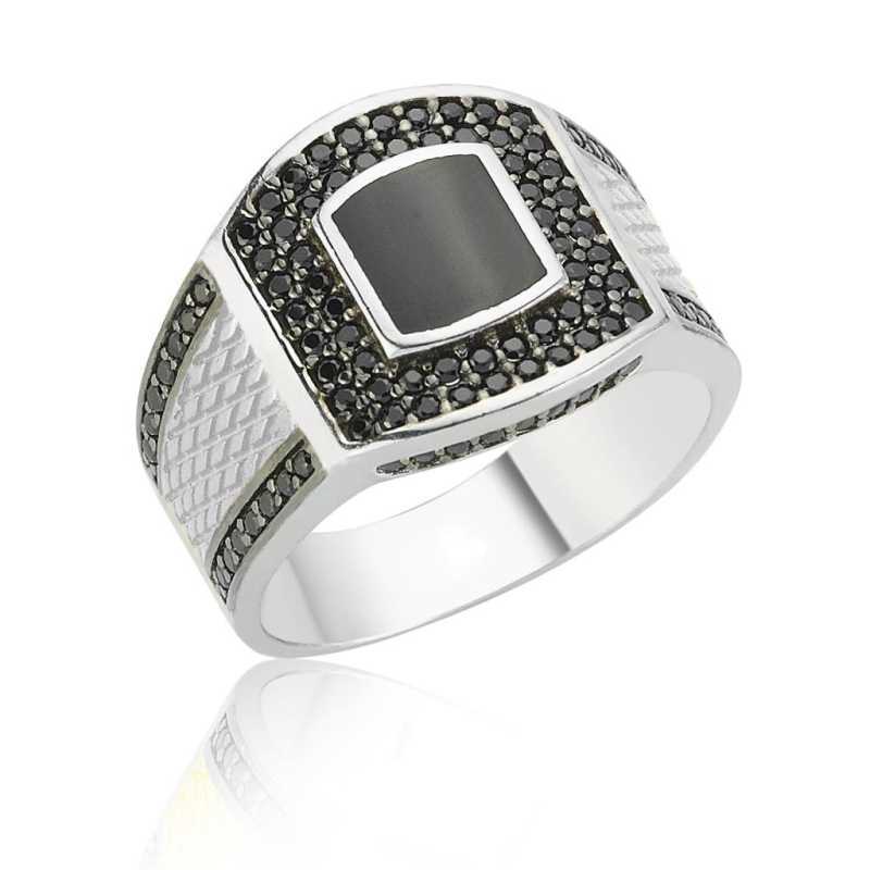Klasik ve şıklıktan ödün vermeyenler için tasarlanan bu şık yüzük; doğum günü hediyesi, babalar günü veya özel günlerde tercih edilebilecek mükemmel bir seçenektir. Siyah taşlı erkek yüzük modeli 925 ayar gümüşten imal edilmiştir. Gümüş üzerine rodyum kaplama yapılmıştır. Rodyum kaplama yapılan gümüş erkek yüzük modelleri parlak bir görünüme sahip olur. Yüzük üzerinde bulunan siyah taşlar zirkondur. Tüm gümüş erkek yüzüklerinde olduğu gibi gümüş siyah taşlı erkek yüzük de tamamen el emeği ile üretilmiştir. Gümüş ve değerli taşlar nedeniyle belirtilen ortalama ürün ağırlığında ± %10 sapma olabilmektedir.