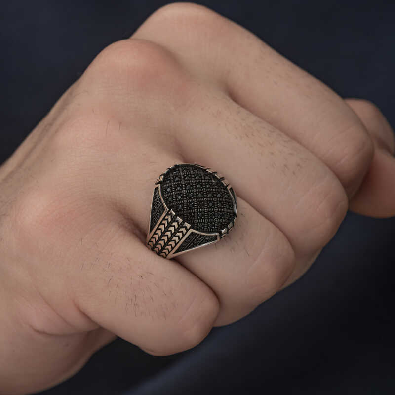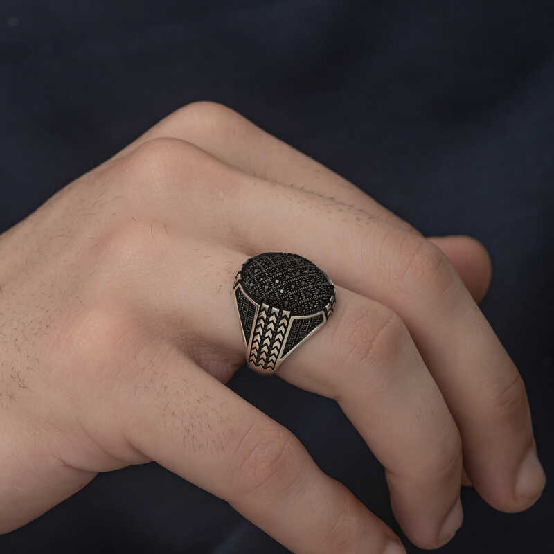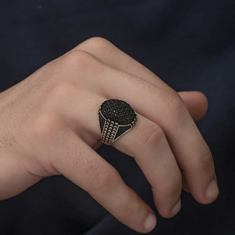Gümüş Zirkon Siyah Taşlı Erkek Yüzük
