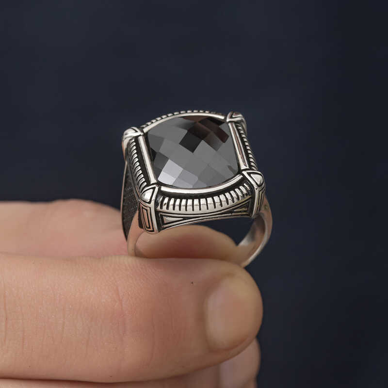 Gümüş üzerindeki zirkon taşından oluşan bu yüzük modeli günün her anında kullanabileceğiniz şık bir aksesuardır. Bu yüzüğü; kendinize ya da sevdiklerinize doğum gününde, babalar gününde yada özel günlerde hediye edebilirsiniz. Siyah zirkon taşlı erkek yüzük modeli 925 ayar gümüşten imal edilmiştir. Gümüş üzerine oksit kaplama yapılmıştır. Oksit kaplama yapılan gümüş erkek yüzük modelleri parlaklığını uzun süre muhafaza eder. Tüm erkek yüzüklerde olduğu gibi gümüş siyah zirkon taşlı erkek yüzük modeli de el emeği ile üretilmiştir. Gümüş ve değerli taşlar nedeniyle belirtilen ortalama ürün ağırlığında ± %10 sapma olabilmektedir.