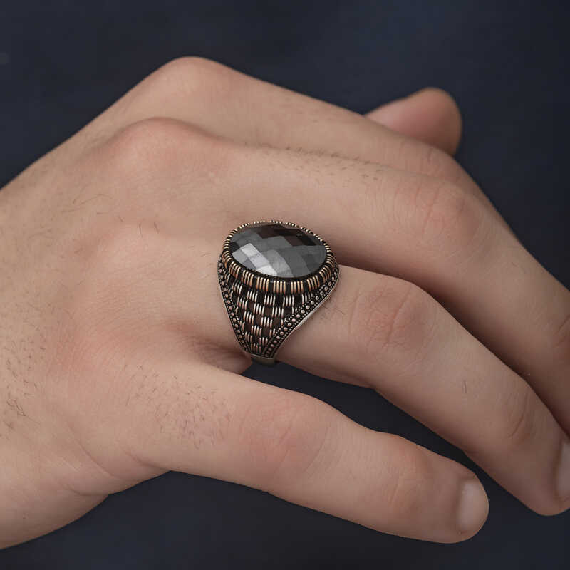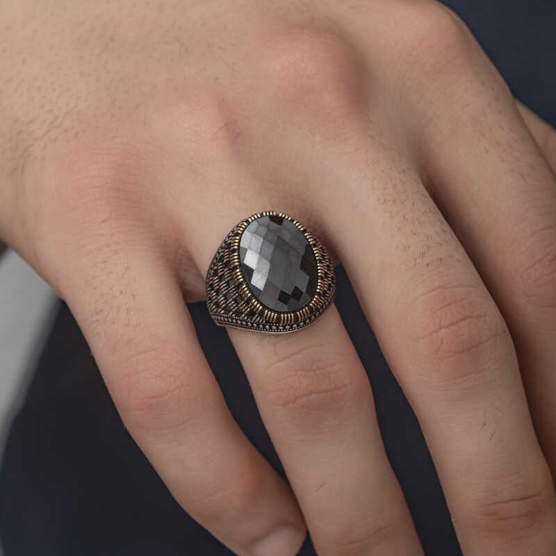 Gümüş üzerindeki zirkon taşından oluşan bu yüzük modeli günün her anında kullanabileceğiniz şık bir aksesuardır. Bu yüzüğü; kendinize ya da sevdiklerinize doğum gününde, babalar gününde yada özel günlerde hediye edebilirsiniz. Siyah zirkon taşlı erkek yüzük modeli 925 ayar gümüşten imal edilmiştir. Gümüş üzerine oksit kaplama yapılmıştır. Oksit kaplama yapılan gümüş erkek yüzük modelleri parlaklığını uzun süre muhafaza eder. Tüm erkek yüzüklerde olduğu gibi gümüş siyah zirkon taşlı erkek yüzük modeli de el emeği ile üretilmiştir. Gümüş ve değerli taşlar nedeniyle belirtilen ortalama ürün ağırlığında ± %10 sapma olabilmektedir.