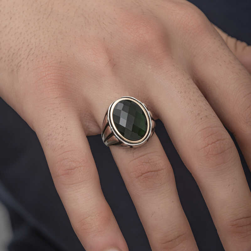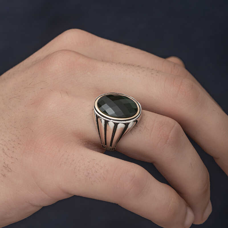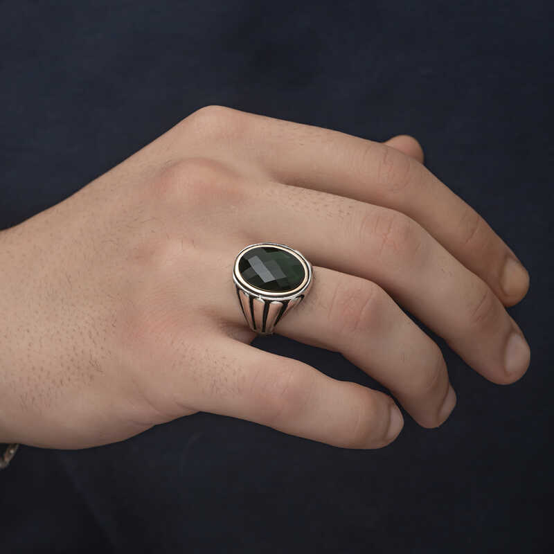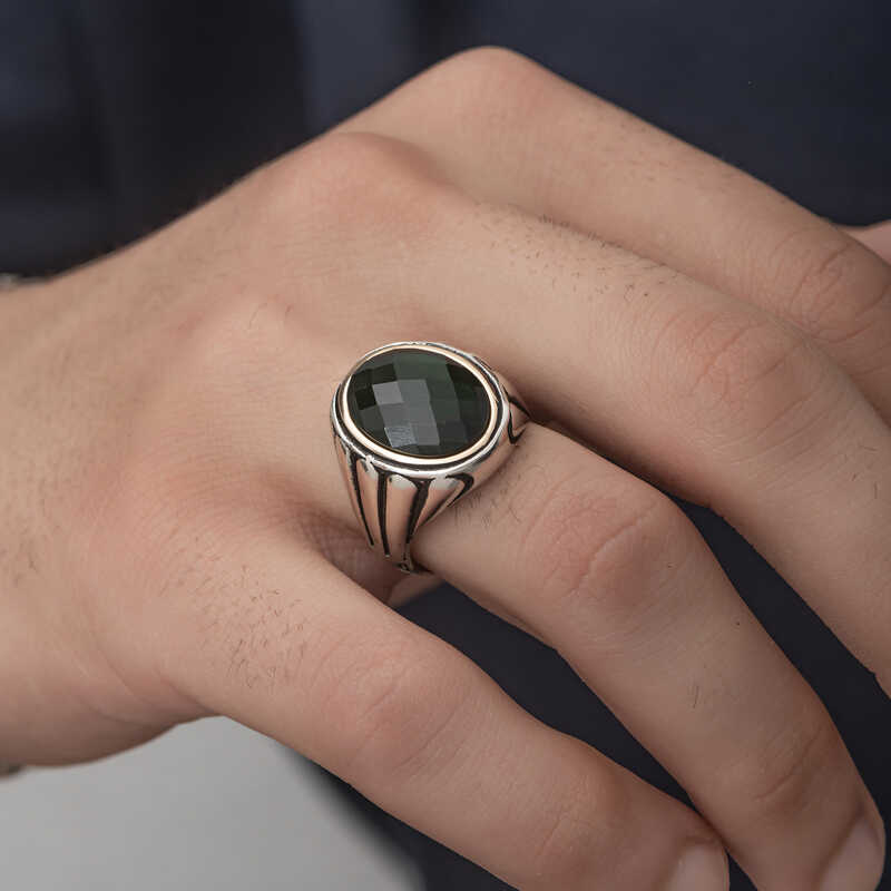 Gümüş Zirkon Siyah Taşlı Erkek Yüzük