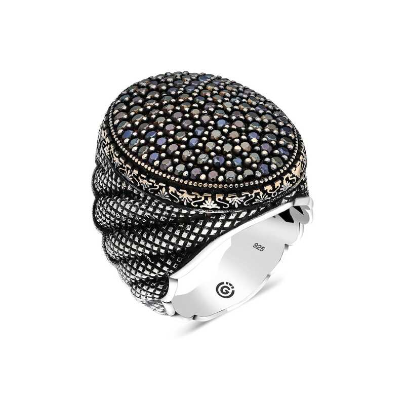 Gümüş Siyah Zirkon Taşlı Oval Erkek Yüzük