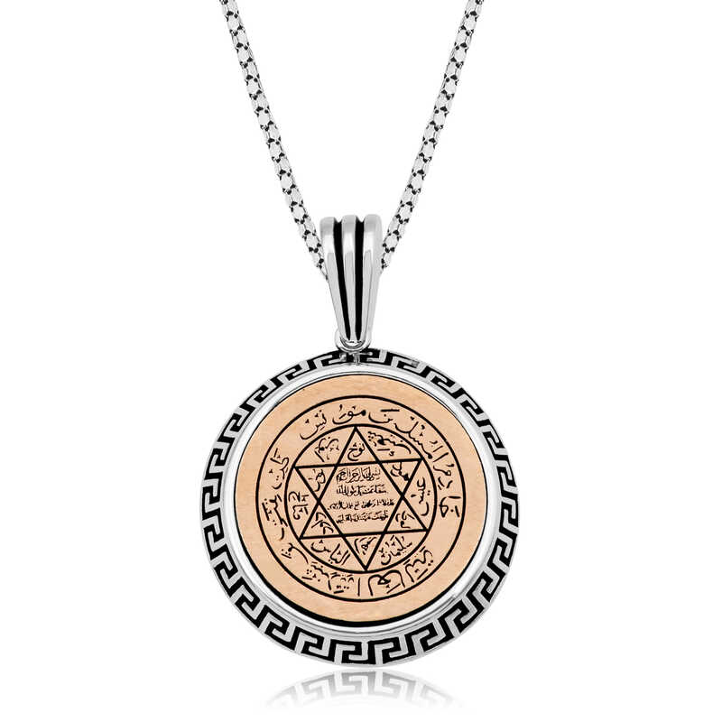 Davud yıldızı veya altı köşeli yıldız olarak da bilinen Süleyman mührünün hikmetlerini saymakla bitiremeyiz. Mührü yanında taşıyan kişiye büyü etki etmez. Kişi her türlü nazardan korunur. Taşıyan kişiye şeytan ve türevlerinin etki etmemesi gibi pek çok şifası vardır. Kolye 925 ayar gümüşten imal edilmiştir. Gümüş üzerine oksit kaplama yapılmıştır. Oksit kaplama yapılan gümüş kolyeler parlaklığını uzun süre muhafaza eder. Tüm gümüş kolyelerde olduğu gibi gümüş Süleyman mührü kolye de el emeği ile üretilmiştir. Gümüş ve değerli taşlar nedeniyle belirtilen ortalama ürün ağırlığında ± %10 sapma olabilmektedir.