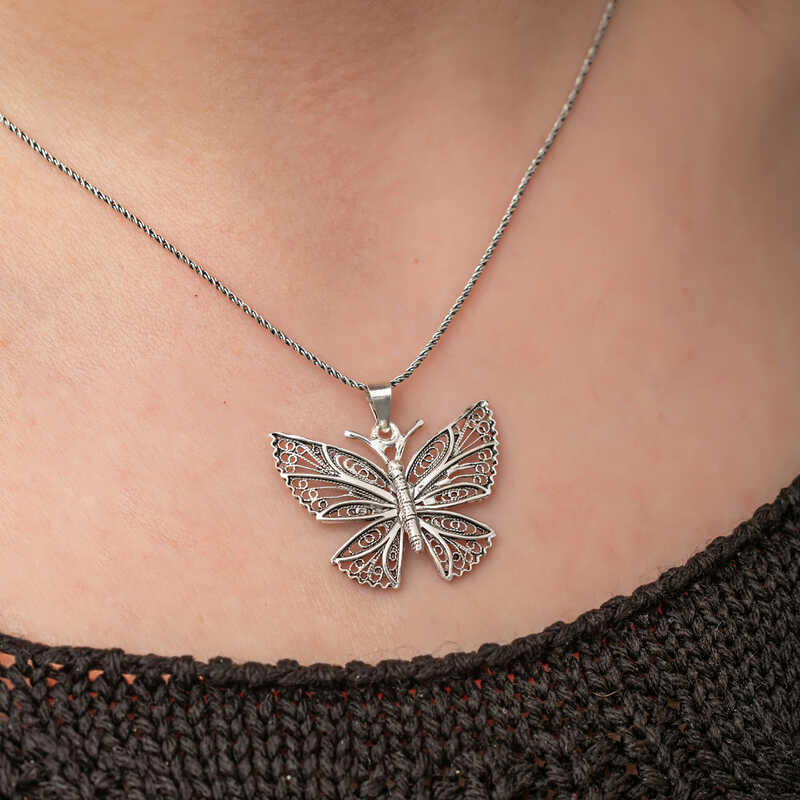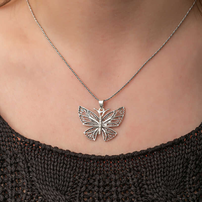 “Gümüş Telkari Kelebek Kadın Kolye” için yorum yapan ilk kişi siz olun