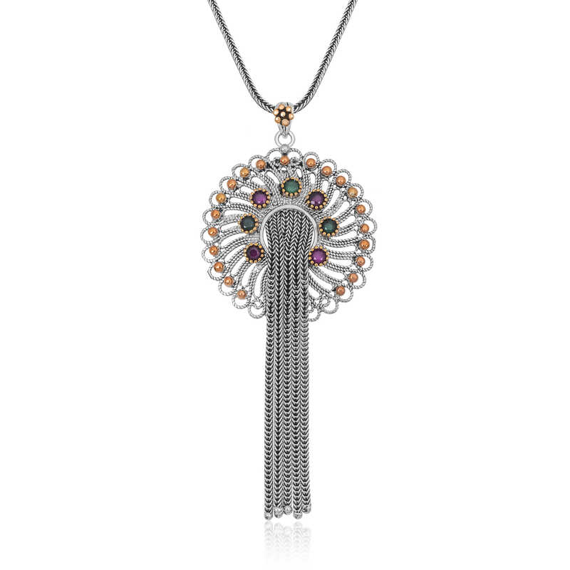 Gümüş Telkari Yakut Zümrüt Renkli Taşlı Kadın Kolye