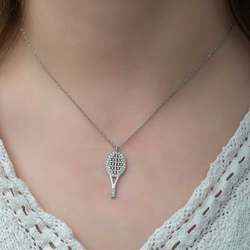 Gümüş Tenis Raketi Bayan Kolye