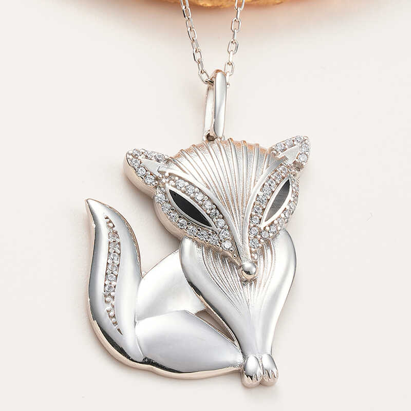 Dünya tatlısı sıcacık sevimli dostlarımız hayvanları sizler için tasarladık. Bu ışıl ışıl ve farklı tasarımıyla bu şık kolye; 925 ayar gümüşten imal edilmiştir. Gümüş üzerine rodyum kaplama yapılmıştır. Rodyum kaplama yapılan gümüş tilki kolyeleri parlaklığını uzun süre muhafaza eder, oksitlenmesi gecikir. Tüm gümüş kolyelerde olduğu gibi gümüş tilki kadın kolyenin de tamamı el emeği ile üretilmiştir. Gümüş ve değerli taşlar nedeniyle belirtilen ortalama ürün ağırlığında ± %10 sapma olabilmektedir.