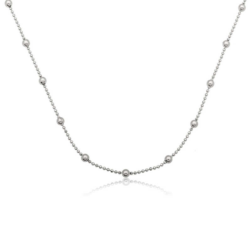 Bu şık zincir; 925 ayar gümüşten imal edilmiştir. Gümüş üzerine rodyum kaplama yapılmıştır. Rodyum kaplama yapılan bayan zincirler parlaklığını uzun süre muhafaza eder, oksitlenmesi gecikir. Sevdiğinize; doğum günü, sevgililer günü ve özel günlerde tercih verebileceğiniz mükemmel bir hediye seçeneğidir. Gümüş zincir modellerimizin tamamında olduğu gibi bu gümüş top zincir de tamamen el emeği ile üretilmiştir. Gümüş ve değerli taşlar nedeniyle ürün ağırlığında ± %10 sapma olabilmektedir.