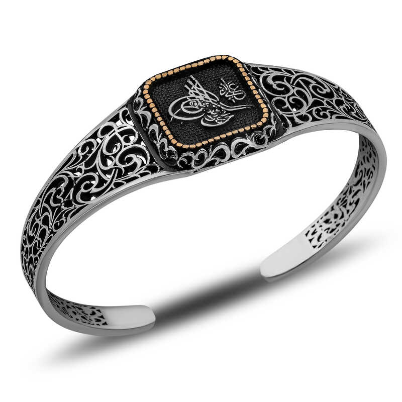 Tuğra ayarlanabilir kelepçe erkek bilekliği, genellikle Osmanlı İmparatorluğu"nu ve Osmanlı kültürünü temsil eden bir aksesuardır. Tuğra, Osmanlı padişahlarının imzası ve sembolü olarak kullanılırdı.Tuğra, padişahın gücünü ve otoritesini simgelediği için, bu bilekliği takan kişi kendini güçlü ve karizmatik hissedebilir.Gümüş bileklik; doğum günü hediyesi, sevgililer günü hediyesi veya diğer özel günlerde hediye olarak tercih edilebilecek mükemmel bir seçenektir.Gümüş üzerine oksit kaplama yapılmıştır. Oksit kaplama yapılan gümüş bileklikler parlaklığını uzun süre muhafaza eder. Gümüş ve değerli taşlar nedeniyle belirtilen ortalama ürün ağırlığında ± %10 sapma olabilmektedir.