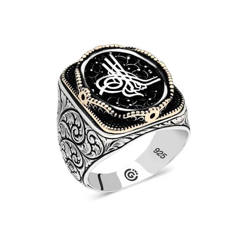Gümüş üzerindeki tuğra oval erkek yüzük modeli günün her anında kullanabileceğiniz şık bir aksesuardır. Bu yüzüğü; kendinize ya da sevdiklerinize doğum gününde, babalar gününde ya da özel günlerde hediye edebilirsiniz. Tuğra oval erkek yüzük modeli 925 ayar gümüşten imal edilmiştir. Gümüş üzerine oksit kaplama yapılmıştır. Oksit kaplama yapılan gümüş erkek yüzük modelleri parlaklığını uzun süre muhafaza eder. Tüm erkek yüzüklerde olduğu gibi gümüş tuğra oval erkek yüzük modeli de el emeği ile üretilmiştir. Gümüş ve değerli taşlar nedeniyle belirtilen ortalama ürün ağırlığında ± %10 sapma olabilmektedir.