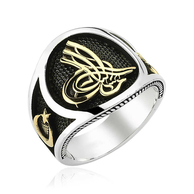 Tuğra, padişahın ismi ve lakabı bulunan alâmet, imza.Tuğra, hat sanatının bir kolu halinde yüzyıllar boyunca usta hattatlar eliyle yazılmıştır. Türkçe’de kelime olarak padişahın ismini ihtiva eden özel bir işaret, padişahın imzası gibi anlamlar ifade eder. Aslı Oğuz lehçesinde tuğra olup, hükümdarın basılmış imzası demektir. Orhan Gazi tarafından kullanılan ilk tuğra Orhan bin Osman ifâdesinden ibâret olup, tuğralardan ilki 1324 diğeri 1348 tarihlidir. Birinci Sultan Osman Gazi"ye ait bir tuğraya günümüze dek hiçbir yerde rastlanmamıştır. Bu nedenle 36 Osmanlı padişahı; ama 35 Osmanlı padişah tuğrası vardır. Padişahın kendisi ve babasının isminin yazıldığı kısma, taht, kürsü veya sere adı verilir. Buradan sola doğru uzanarak aşağıdan yukarıya doğru uzayan ve iç içe iki kavisten meydana gelen kısma ise, beyze veya sancak adı verilir. Osmanlı imparatorluğunu simgeleyen Tuğra armalı yüzüğü severek kullanabilir ve sevdiklerinize armağan edebilirsiniz. 925 ayar gümüşten imal edilmiştir. Gümüş üzerine rodyum kaplama yapılmıştır. Rodyum kaplama yapılan ürünler parlaklığını uzun süre muhafaza eder, oksitlenmesi gecikir. Gümüş tuğra armalı yüzük ve diğer ürünlerimizin tamamı el emeği ile üretilmiştir. Gümüş ve değerli taşlar nedeniyle ürün ağırlığında ± %10 sapma olabilmektedir.